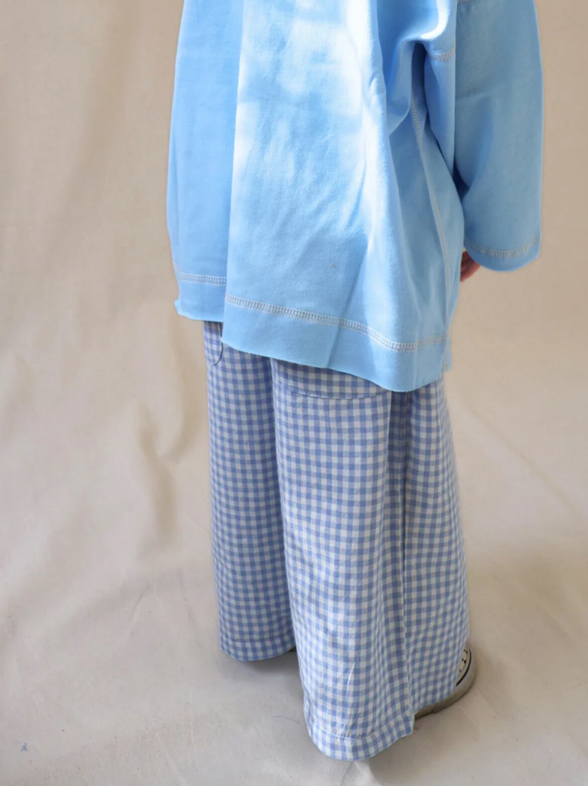 夢のようなコットン素材で仕立てたギンガムチェックパンツは、ゆったりとしたワイドレッグフィット、ドロップクロッチ、伸縮性のあるウエストバンド、そしてちょっとした小物を入れるのにぴったりなフロントとバックのポケットが特徴です。
