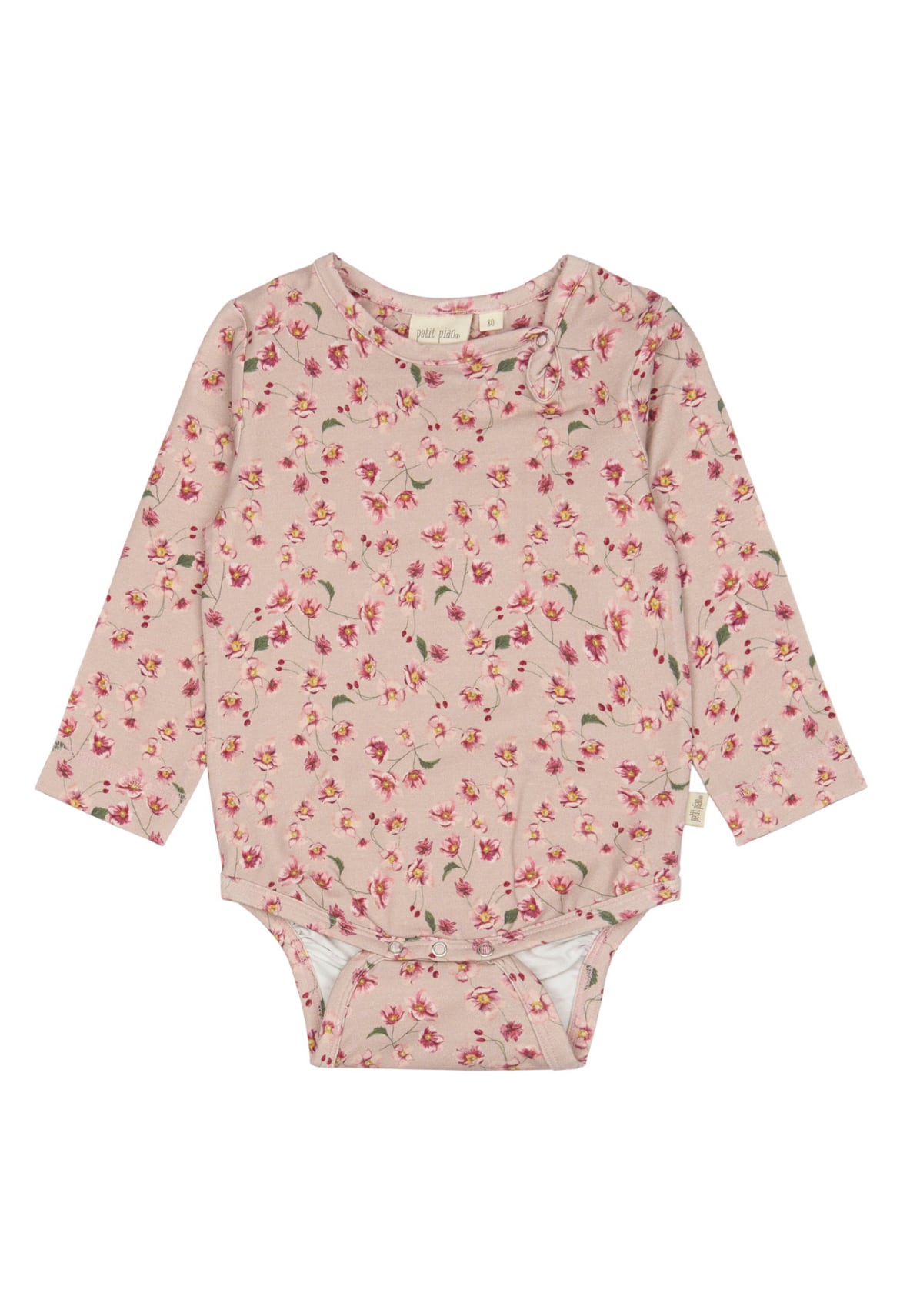 オーガニックコットンを使用したPetit Piaoの美しい水彩プリントが施されたボディスーツ。