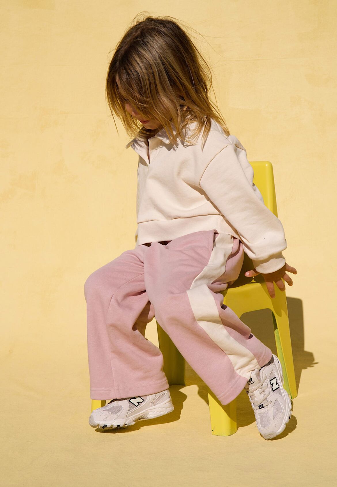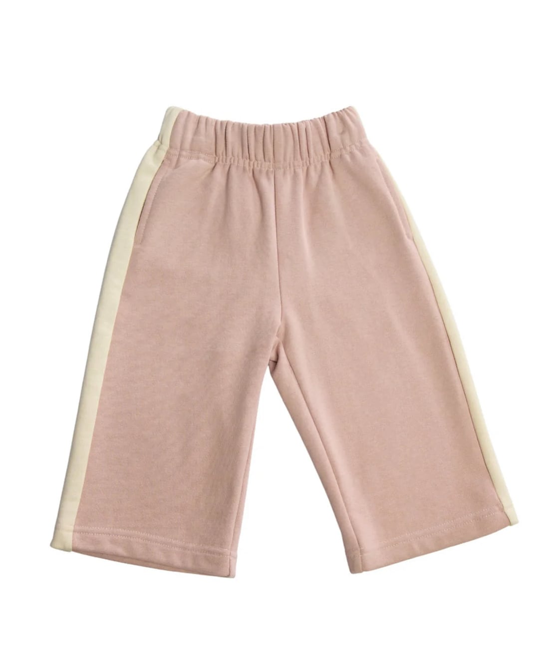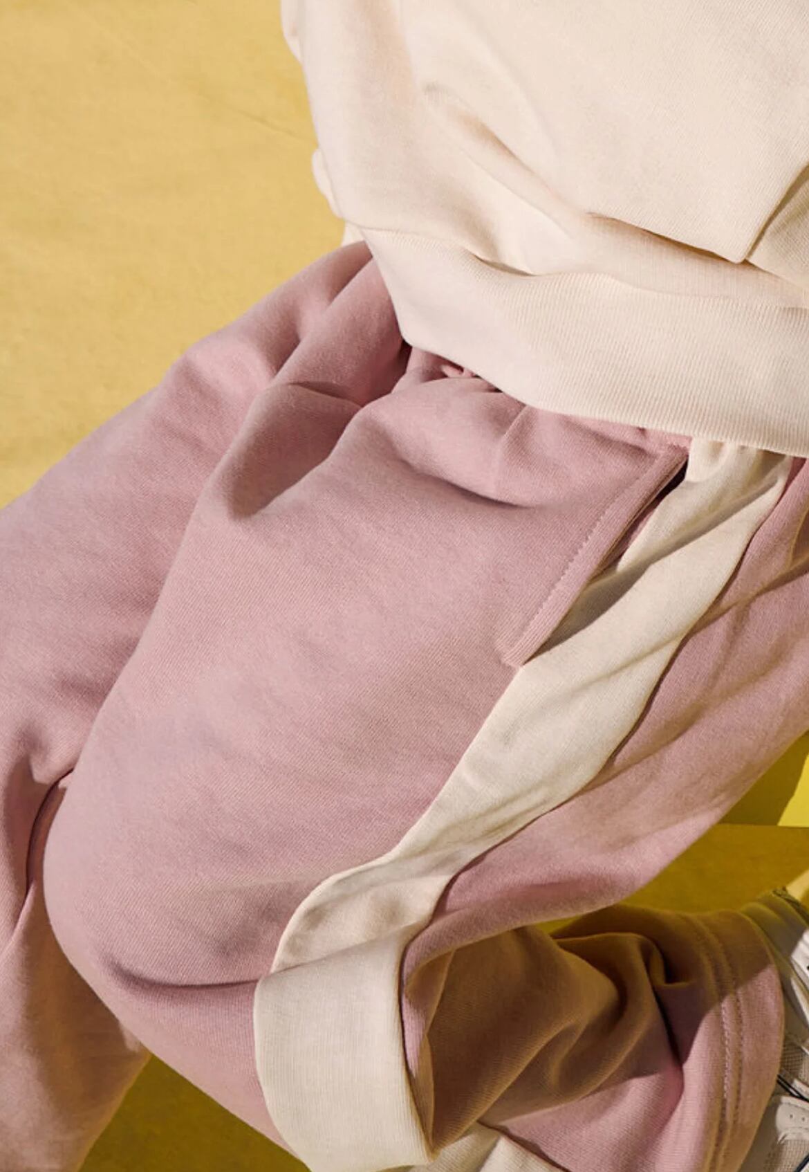 柔らかな100%コットン素材を使用したこのパンツは、リラックスしたシルエットに、クリーム色のスポーティなコントラストサイドパネルが映えます。