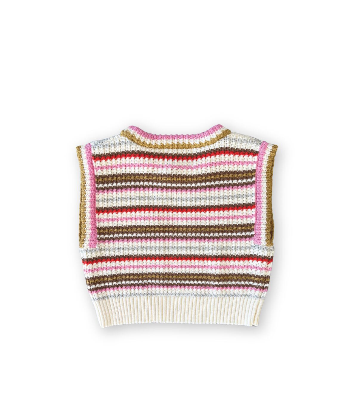糸染めのストライプが特徴的なクロッシェ風ニット。