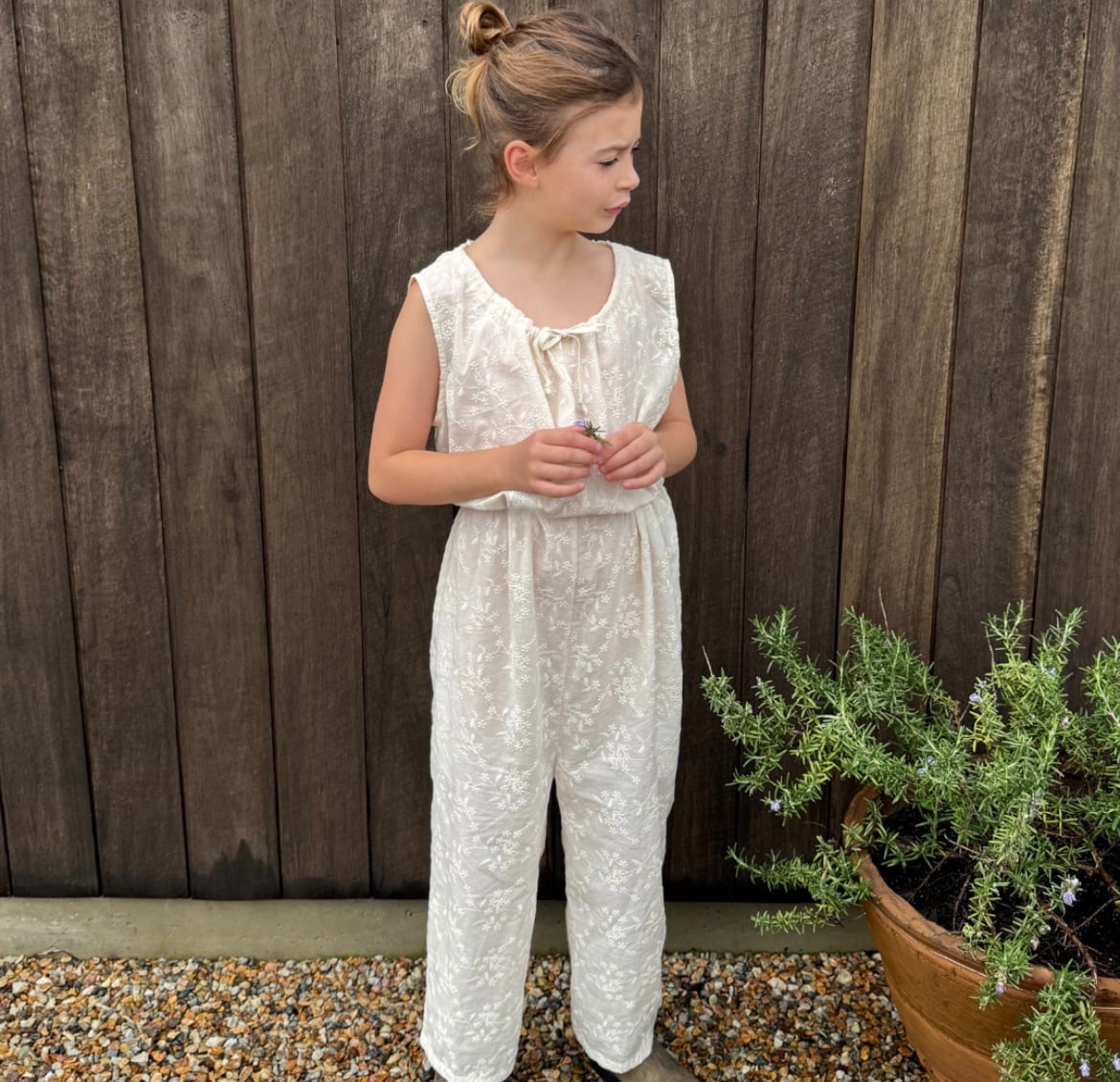ジュニパージャンプスーツは、チャーミングなドローストリングネックラインとキュートなハート型ポケットが特徴で、甘さと特別感が絶妙です。