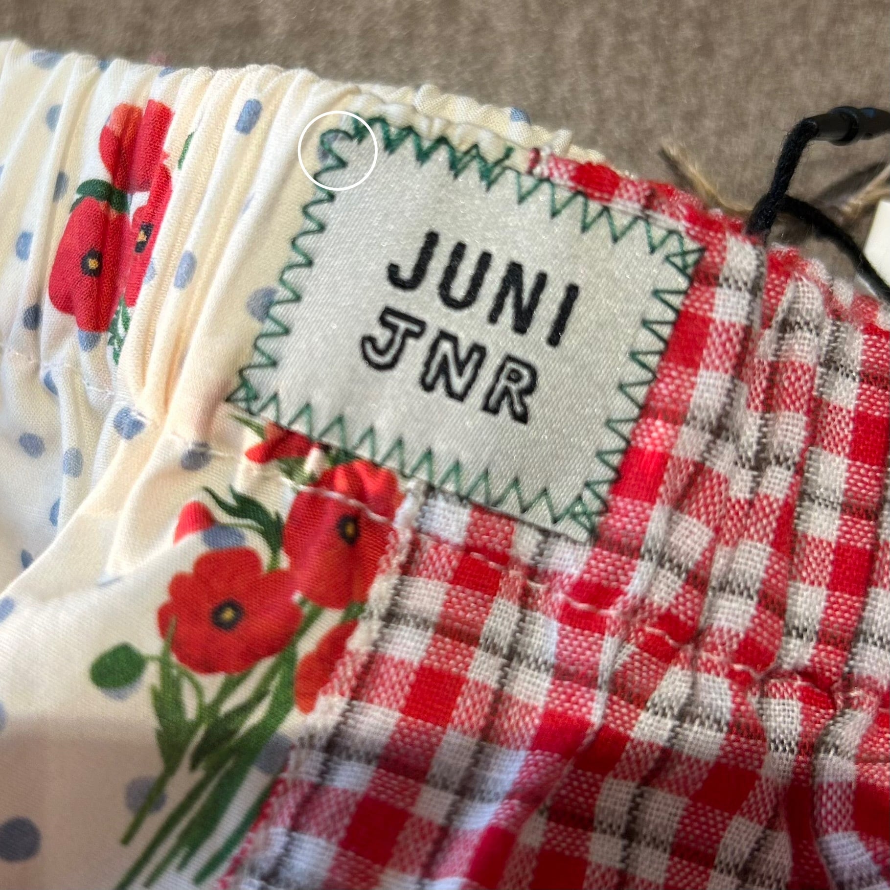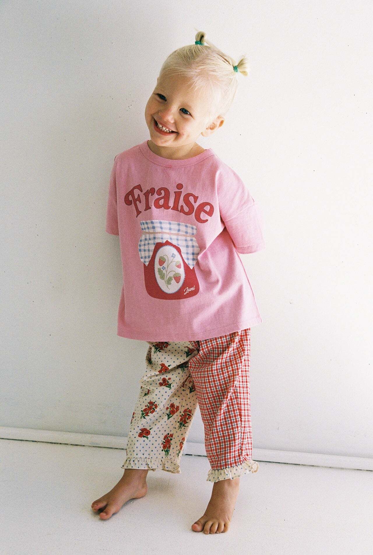 ポピーとチェック柄のパンツ。